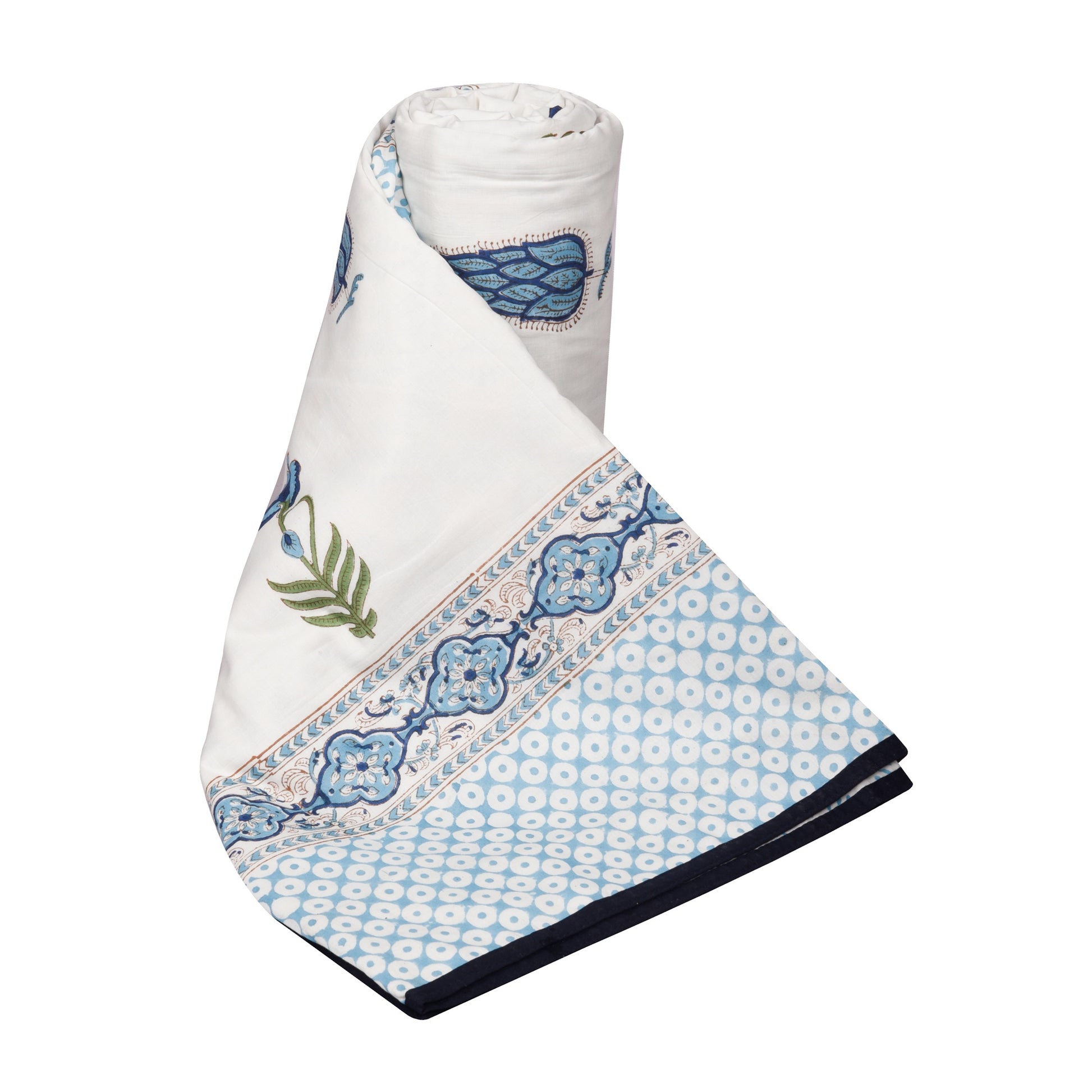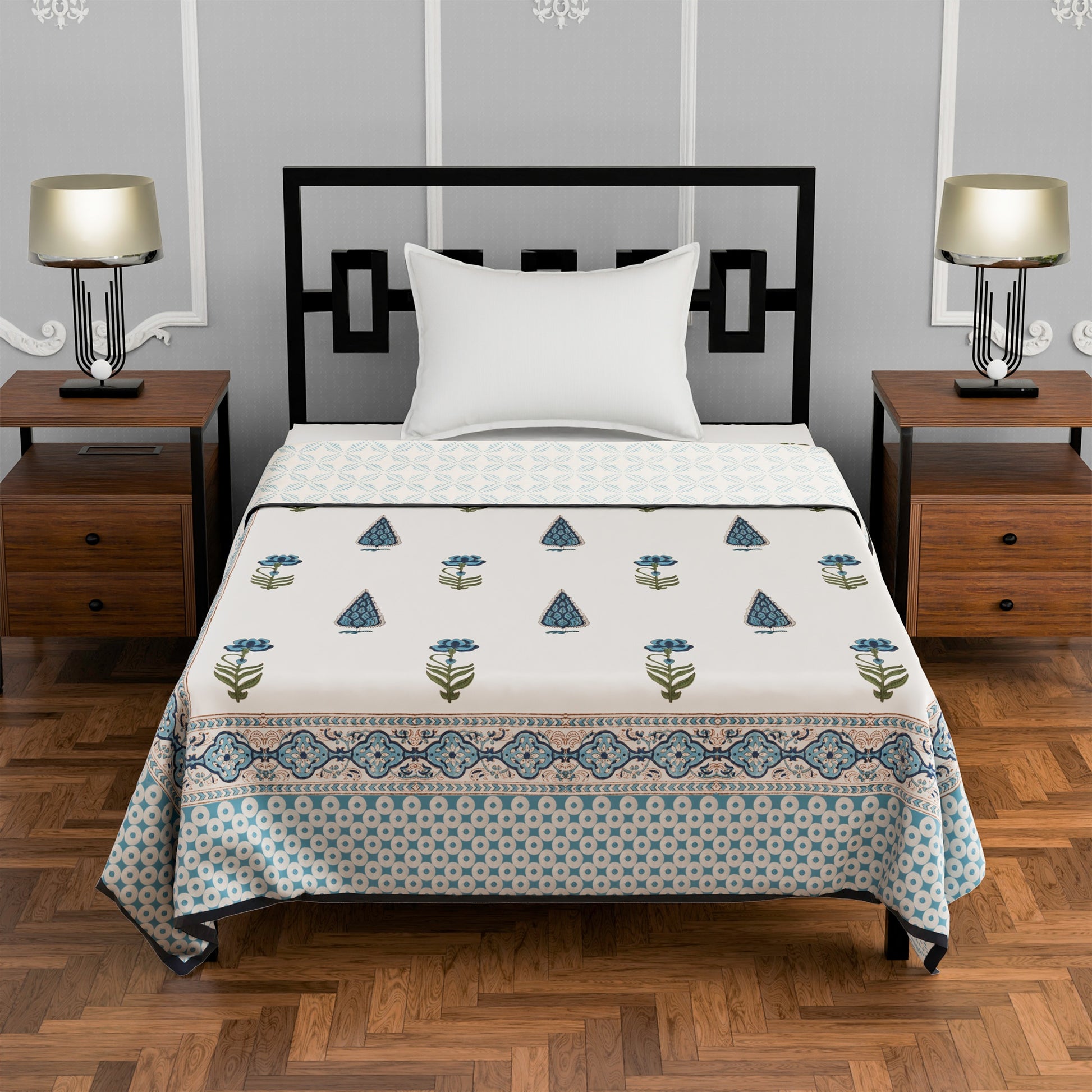 - Blanket single bed: (60 X 90 Inches) – Pure cotton A/C Dohar - made by hand block printing process.