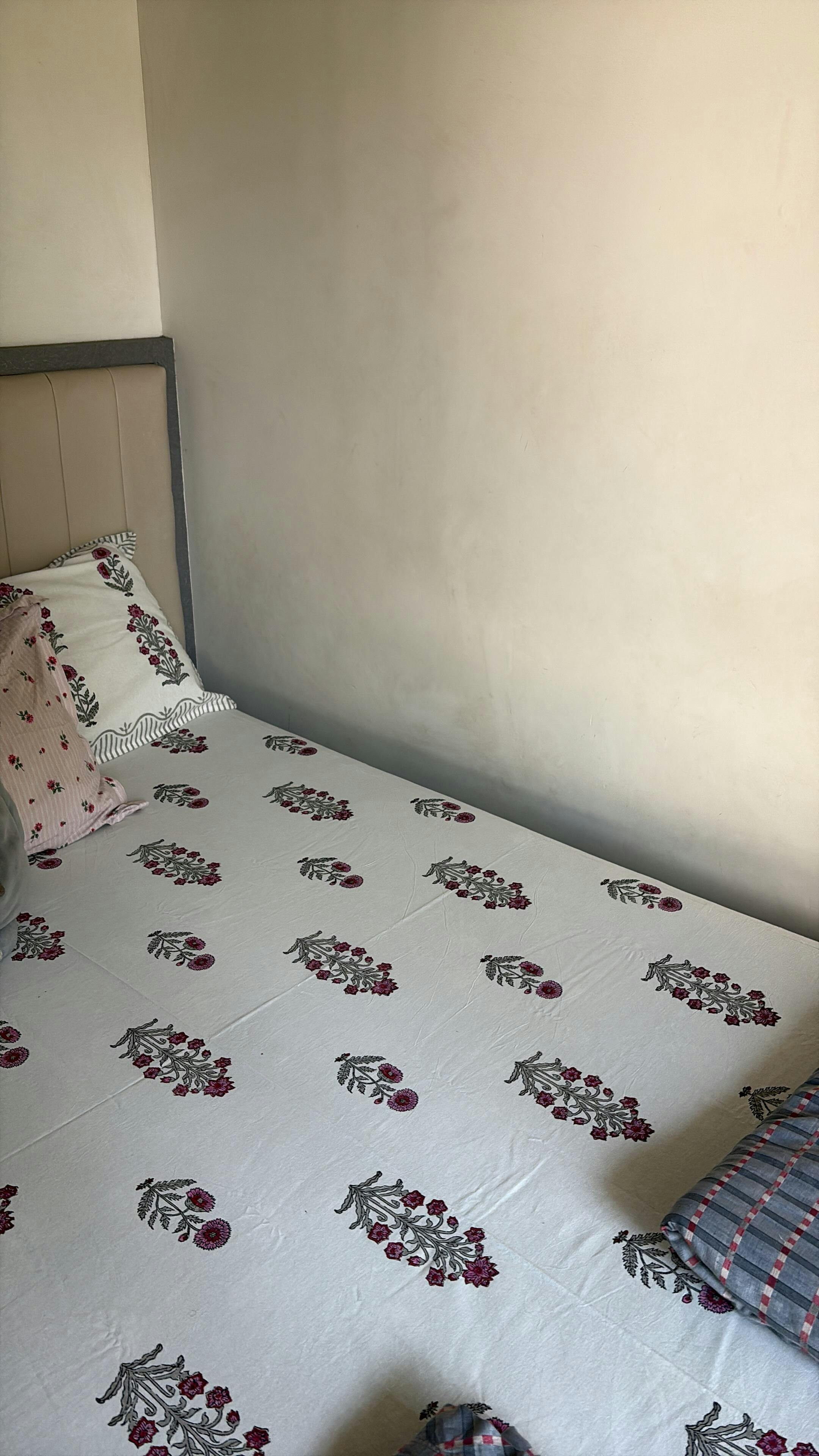 - Blanket single bed: (60 X 90 Inches) – Pure cotton A/C Dohar - made by hand block printing process.